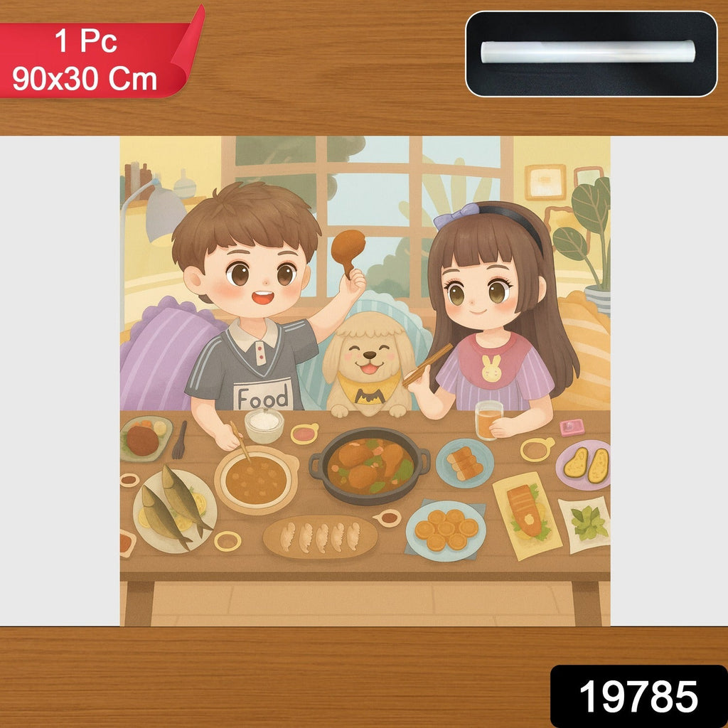 Cartoon-Themed Food Table Wallpaper Poster for Kids – 90x30 cm – High-Quality Print – Perfect for Kid's Room Decoration